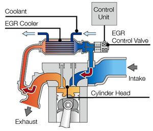 - EGR-ventilen skapar en slinga tillbaka från avgasgrenröret till insugningsröret för att återcirkulera förbrända gaser.